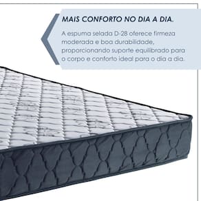 O Colchão de Espuma SUPREMO D-28 combina conforto, firmeza e durabilidade, sendo ideal para quem busca um descanso de qualidade com suporte confiável. Fabricado com espuma selada D-28, garante estabilidade e adaptação ao corpo, favorecendo um sono mais contínuo e reparador. Seu tampo em malha bordada 100% poliéster de gramatura 180g/m² proporciona toque macio, boa ventilação e acabamento sofisticado. A faixa lateral em suede 190g/m² complementa o visual com elegância e resistência. Com suporte para até 140kg, o colchão oferece firmeza moderada e conta com tratamento contra ácaros, mofos e fungos, contribuindo para um ambiente mais saudável. A camada de espuma D-20 no tampo ainda reforça a sensação de conforto, tornando este modelo uma excelente escolha para quem valoriza bem-estar. Ambiente Principal: Quarto Antiácaro: Sim Antialérgico: Sim Antifungo: Sim Certificado: Selo de Desempenho – Compulsório (INMETRO) codigo_ean: 7901056700322 Comprimento: 188 cm Cor: Cinza Claro / Branco Cor do Produto: Cinza Claro / Branco Densidade da Espuma: Espuma D-28 Itens Inclusos: 1 Colchão Linha ou Coleção: Supremo Marca: América Colchões Nível de Conforto: Macio Origem do Produto: Nacional Peso: 22.6000 Pillow: EuroPillow Possui Certificado: Sim Possui Pillow: Sim Precisa virar: Não Recomendações de Uso, Manutenção e Limpeza: A limpeza deve ser feita com aspirador ou pano úmido com sabão neutro, sem encharcar. Mantenha em ambiente ventilado e longe do sol direto. Revestimento: Poliéster Tamanho: Casal Tipo de espuma: Espuma Soft Tipo do Colchão: Espuma Marca: Não Informado