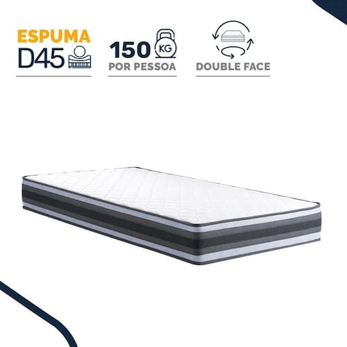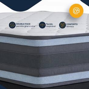 O sistema Double Face permite virar o colchão, aumentando a vida útil. O tampo em Malha melhora o conforto térmico e seu revestimento lateral conta com um tecido respirável(área 3D), o modelo suporta até 150kg por pessoa.