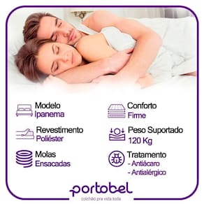 Colchão de Molas Ensacadas Casal Portobel Ipanema - 138x188x25cm