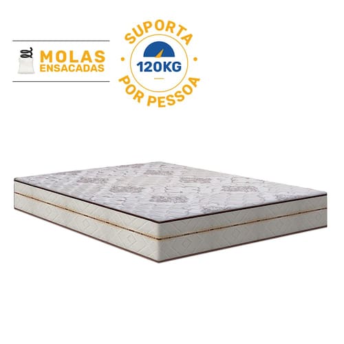 Este colchão de Molas Ensacadas oferece conforto macio, ideal para quem busca alívio em pontos de pressão e suporte personalizado. O tampo bordado traz sofisticação e resistência, enquanto o design de molas ensacadas permite uma estabilidade que acomoda até 120 kg por pessoa.
