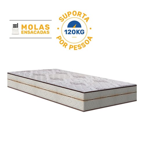 Este colchão de Molas Ensacadas oferece conforto macio, ideal para quem busca alívio em pontos de pressão e suporte personalizado. O tampo bordado traz sofisticação e resistência, enquanto o design de molas ensacadas permite uma estabilidade que acomoda até 120 kg por pessoa.