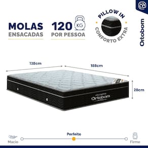 Busca um colchão que alie conforto e praticidade? Nosso colchão com molas ensacadas e pillow in oferece uma camada extra de conforto, ideal para quem valoriza noites de sono reparadoras. Suporta até 120kg por pessoa, combinando firmeza e suavidade em um só produto.
