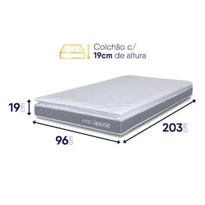 Medidas do Colchão: 88x188x19 cm, 96x203x19 cm, 128x188x19 cm, 138x188x19 cm, 158x198x19 cm, 193x203x19 cm.