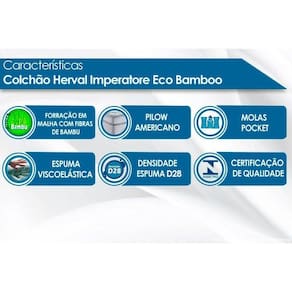 Colchão Herval de Molas Pocket Imperatore Eco Bamboo Viscoelástico Pillow Top - Colchão Queen Size - 1,58x1,98x0,34 - Sem Cama Box