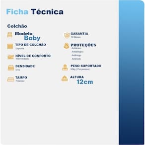 Fabricado com espuma D18, ele oferece um suporte adequado e é projetado para suportar até 40 kg, garantindo durabilidade e resistência.