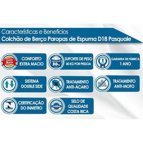 Colchão Infantil D18 Pasquale Rampa Anti-Refluxo (60x130x10) - Paropas