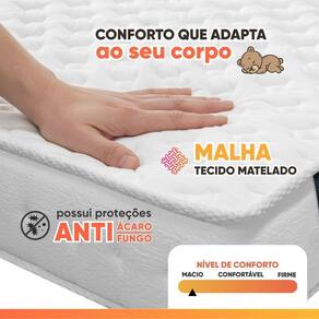 REVESTIMENTO SUPERIOR E LATERAL: Produzido em tecido de malha de alta qualidade, que proporciona toque suave, conforto prolongado e excelente durabilidade, garantindo uma sensação agradável durante o descanso.