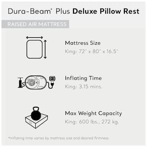 COLCHÃO FIRM KING SIZE Apresenta construção interior de fibra tecnologia para firmeza e travesseiro embutido para fornecer suporte ELEVADO E CONFORTÁVEL colchão macio aveludado elevado a do chão para seu conforto e conveniência CONSTRUÇÃO ESTÁVEL A construção exclusiva da borda e do anel inferior oferece estabilidade superior BOMBA RÁPIDA EMBUTIDA Potente bomba interna para rápida inflação e deflação e tempo de inflação aproximado de 3,15 minutos para uso imediato DURÁVEL E PORTÁTIL Inclui bolsa de transporte para fácil transporte pela casa e para uso em viagens de acampamento Dimensões aproximadas C x L x A 203 x 177 x Peso 7 kg Marca: Não Informado