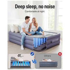 COMPANHEIRO DE SONO PROFUNDO Colchão de ar com uma nova geração de design de estrutura de tensão de barril, pressão do colchão distribuída uniformemente, suporte mais estável, processo de flocagem suave, para que você possa desfrutar de uma noite de sono relaxada e confortável, o peso máximo permitido 315 kg.
