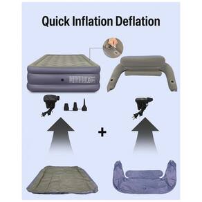 DESIGN PENSATIVO cabeceira de 3 seções mais próxima do design do corpo humano, pescoço e cintura mais confortáveis, design de orifício duplo, você pode colocar xícaras e outros objetos pequenos, conexão de encaixe, pode ser facilmente desmontado. Equipado com bomba de ar de alto desempenho, pode concluir o trabalho em 2 3 minutos. Se você também precisar inflar outros produtos, a bomba pode ser efetivamente compatível com o uso de, por exemplo, balões, travesseiros infláveis, anéis de natação, caiaques infláveis.
