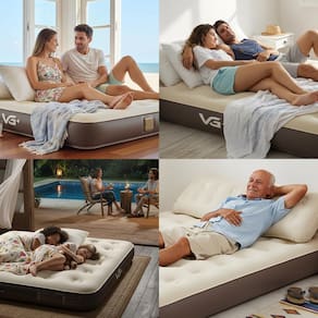 - Colchão com fonte de alimentação sem fio, com bateria de lítio recarregável via cabo USB-C, eliminando a necessidade de cabos ou tomadas durante o uso;