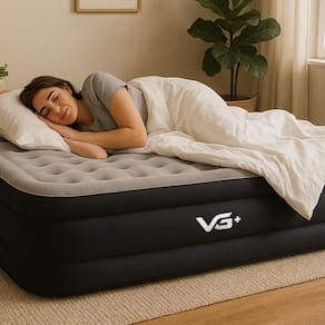 Durma com o conforto de uma cama real, onde você estiver! O Colchão Inflável Casal Queen Raised VG Plus foi projetado para oferecer o máximo de praticidade, durabilidade e conforto. Com altura elevada, ele proporciona uma experiência de sono mais estável, ergonômica e agradável ? ideal para quem não abre mão de dormir bem, até fora de casa. A bomba de ar de lítio removível foi desenvolvida para facilitar sua rotina, oferecendo mobilidade e autonomia no uso. Nada de tomadas ou extensões: com bateria recarregável via USB, ela garante inflagem rápida com apenas um toque.