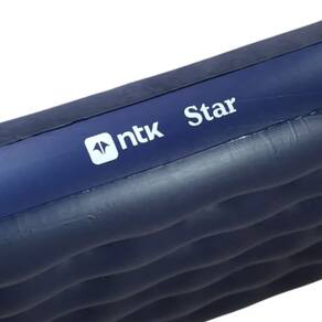 - Marca: NTK - Linha: Star - Tipo: Colchão inflável casal. - Material: PVC reforçado com superfície aveludada. - Dimensões: 1,91 m (C) x 1,37 m (L) x 22 cm (A) - Capacidade: Suporta até 200kg. - Cor: Azul - Cuidados: Limpeza com pano úmido e sabão neutro; guardar seco e vazio.