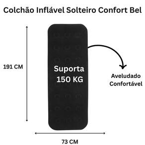 Colchão Inflável Solteiro Deluxe Comfort Bel Preto 191cm X 73cm X 22cm Resistente Portátil para Casa Viagem Camping 150kg