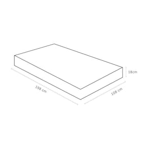 Informações Técnicas: - Estrutura Interna: Espuma D33 Pró Aditivada de Alta Performance - Estrutura Externa: Viscopoli (51% Viscose e 49% Poliéster), bordado em matelassê. - Cor: Grafite e Branco - Altura: 18cm | Largura: 108cm | Profundidade: 198cm - Suporta até 100kg por pessoa - Conteúdo da Embalagem: 1 Colchão Ortobom + Manual.
