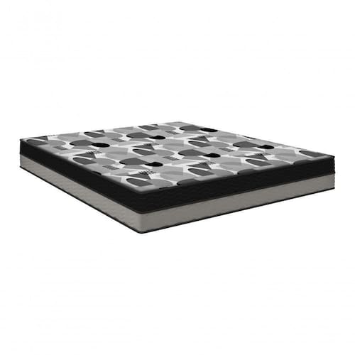 Interior em placa EPS e duas camadas de conforto em espuma D28 e D33 Pró Aditivadas de Alta Performance. Tecido em 100% Poliester, bordado em matelassê, tratamento e .