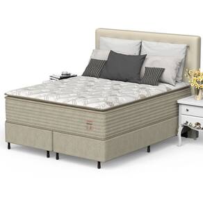 Conforto Acolhedor com Super Pillow e Tecido Premium: Apesar da firmeza estrutural, o generoso Super Pillow proporciona uma camada de acolhimento suave e envolvente. O tecido em Malha Branca de 280 g/m², com detalhes bege cuidadosamente integrados, oferece um toque agradável e uma estética elegante, digna de um ambiente de alto padrão. Essa combinação luxuosa convida a momentos de relaxamento profundo, não apenas durante o sono, mas em qualquer momento de prazer e bem-estar.
