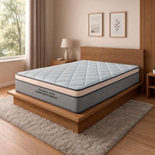 O Colchão Molas Ensacadas Active da Bom Pastor combina tecnologia e conforto para proporcionar um sono reparador de acordo com seu Gosto. Possui o sistema Double Face, ou seja, pode ser utilizado dos dois lados, cada um com um conforto distindo. Um dos lados Possui uma camada extra de conforto para quem procura conforto mais macio, mas com toda a sustentação das molas ensacadas. Do outro lado, Possui uma camada mais firme de espuma D45 para quem procura um conforto mais firme. Com molas ensacadas que se adaptam aos movimentos do corpo, o colchão garante suporte individualizado e maior estabilidade durante a noite, tornando este colchão ideal para quem busca qualidade, durabilidade e bem-estar direto da fábrica.