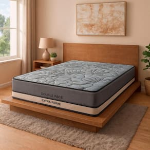 Sitema Double Face. Um lado do colchão com conforto macio, e outro lado com conforto mais firme, deixando duas opções de conforto no mesmo produto.