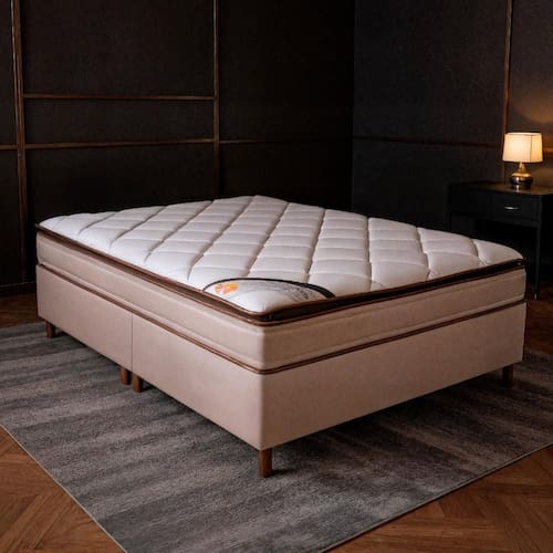 Estrutura em molas ensacadas individualmente e borda lateral em espuma de alto resiliência.