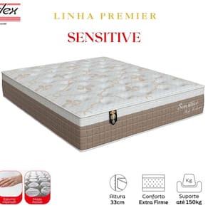 Colchão King Size Molas Molas ensacadas Ensacadas Sensitive Orthoflex 33x193x203cm 1) Tampo superior malha 100% poliéster 420gr/m² matelassado manta siliconada e espuma