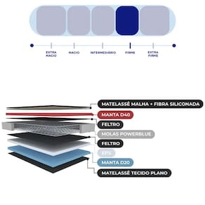 Molas PowerBlue Sofre com dores nas costas? As molas PowerBlue sao confeccionadas em fio continuo e posicionadas na horizontal, para proporcionar maior sustentacao ao corpo, durabilidade incrivel e suporte de peso impressionante. Sao ate 200 kg suportados em cada lado desse colchao maravilhoso. O conforto que voce merece, e a saude que voce sonha estao aqui!