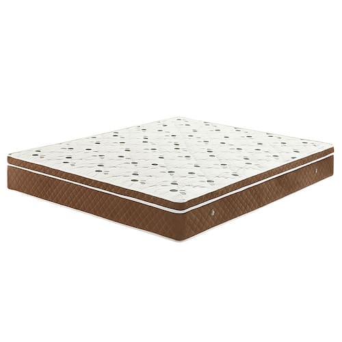Especificações técnicas • Modelo: Casal • Medidas: 138 cm (largura) x 188 cm (comprimento) x 20 cm (altura) • Tipo de molas: Bonnel • Revestimento lateral: Suede marrom • Revestimento superior/inferior: Tecido plano macio • Suporte de peso recomendado: até 120 kg por usuário