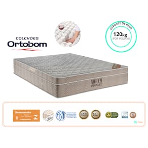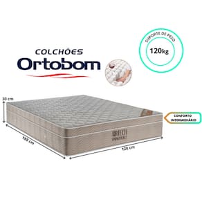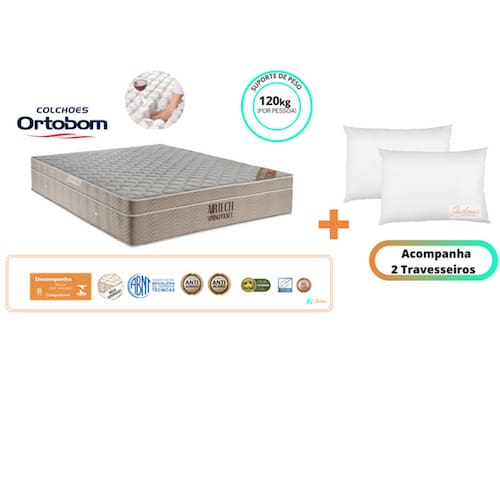Colchão Casal Viúva Airtech Springpocket 128x188 Ortobom - Acompanha 2 Travesseiros FibraO Colchão De Molas Ensacadas - Ortobom - AirTech Springpocket possui molas ensacadas, com uma camada de espuma, proporcionando conforto firme, suportando por pessoa até 120kg, que combinado com suas proteções antiácaro, antialérgico e antifungo lhe garante proteção e conforto extra durante o sono.Especificações Técnicas Colchão: Marca: Ortobom;- Tipo de Mola: Springpocket (Ensacadas);- Proteções: Antiácaro - Antialérgico - Antifungo - Antimofo;- Acabamento: Bordado em Matelassê;- Matéria prima: Mola Ensacada / Espuma / Tecido;- Tipo de conforto: Médio;- Peso máximo recomendado: até 120 Kg (por pessoa);- Garantia: 12 meses na estrutura e 3 meses no tecido;- Dimensões do produto (largura x comprimento x altura) Casal Viúva: 128x188x30cmATENÇÃO: Verifique se as dimensões dos produtos passam por elevadores, portas, escadas e corredores. Não nos responsabilizamos pelo transporte dos produtos por escadas, guinchos, içamentos ou quaisquer outros meios específicos de transporte.