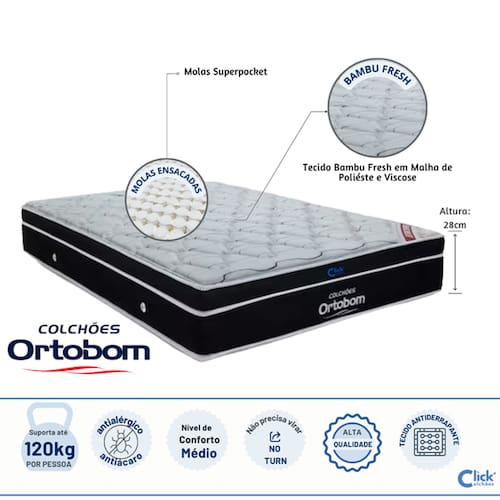 Molas ensacadas, espuma, malha de poliéster com viscoseVendido e entregue por CLICK COLCHOES