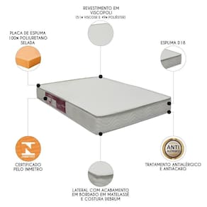 Pensado na praticidade do dia a dia, o revestimento é feito em tecido composto por 51% viscose e 49% poliéster, o qual recebe propriedades antialérgicas e antiácaro, tornando-o ideal para bebês sensíveis. Para completar, o plástico impermeável assegura que o colchão permaneça sempre seco e protegido, além de garantir uma higienização impecável, enquanto o design matelassê na lateral adiciona um toque estético encantador. Já a estrutura, feita com placa de espuma 100% poliuretano D18 Selada, proporciona suporte adequado e durabilidade.