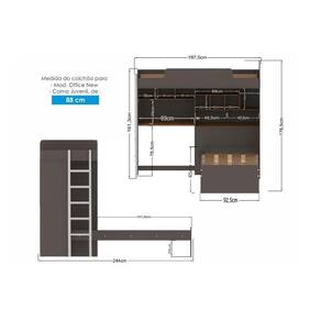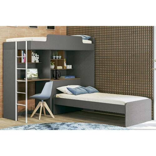 Beliche Multifuncional Office New (Cama+Escrivaninha de CPU+Baú+Nicho+Prateleiras) Grafite/Jatobá - Santos Andirá