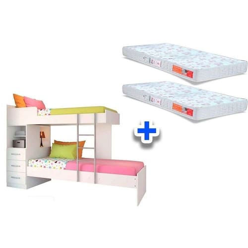 Colchão Pérola Polar (2un) + Beliche Plus Branco Abaixo segue os produtos do KIT: Colchão Pérola Polar (2un) + Beliche Plus Branco Colchão Solteiro Espuma D20 Pérola Grey (88x188x12) - Polar