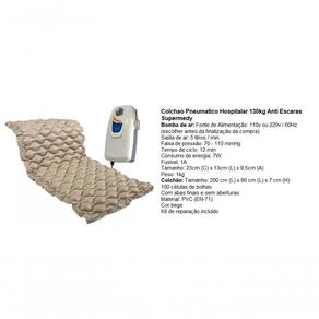 Colchão Pneumático 110V Supermedy é um sistema de pressão alternada desenvolvido para proporcionar alívio ao corpo de pacientes que permanecem por muitas horas deitados ou na mesma posição, para prevenção de escaras de uso hospitalar ou domiciliar. Seu sistema de ar, o Air Plus, massageia e estimula os tecidos inativos promovendo circulação vital.Funciona por meio de um ciclo que dura 12 minutos para inflar e desinflar, alternando a pressão de ar de cada cé, proporcionando alívio de pressão às partes do corpo que repousam sobre as células deflacionadas, esse resultado estimula os movimentos normais do corpo e a circulação do sangue, reduzindo também os riscos de danos ao tecido da pele causado por pressão constante.Características:- Compressor durável e potente;- Colchão de bolhas oferece conforto para dormir;- Nível de ruído super silencioso e muito baixo;- Colchão de bolhas de longa duração;- Luz indicadora de funcionamento;- Baixo consumo de energia elétrica;- PVC não tóxico;- Livre de odores;