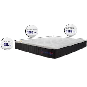 FICHA TÉCNICA DO PRODUTO Tamanho QUEEN 158cm x 198cm SOBRE O COLCHÃO Altura 28 cm Espuma Estrutural D26+Eps Molas Ensacadas (molas Ensacadas individualmente) Revestimento do Tampo em Malha importada Revestimento da Faixa lateral em Suede Revestimento do Fundo com Forro Antiderrapante
