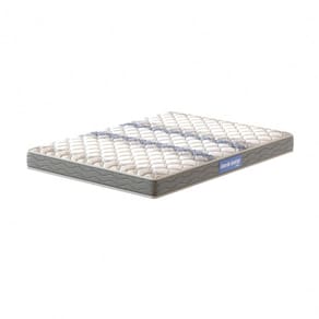 A primeira camada apresenta matelassê com uma manta de espuma D20 revestida em tecido em poliéster branco com detalhes azul e cinza. Possui matelassê nos dois lados do colchão, permitindo a utilização em ambos os lados.