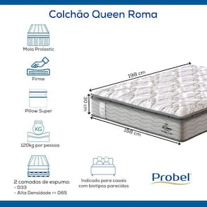 As espumas do Colchão Queen Roma foram desenvolvidas com a Tecnologia ProMax Probel, que passam por rigorosos testes de qualidade em laboratório e recebem tratamento antiácaro e antifungo.