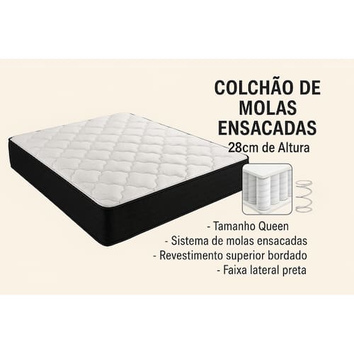 O Colchão tem sua estrutura composta por molas ensacadas individualmente, proporcionando conforto e suporte necessário para a parte lombar da coluna e é altamente resistente e confortável, proporcionando melhor sustentação e durabilidade ao produto, o tampo é bordado, que entrega uma camada extra de conforto. Seu revestimento é com tratamento antialérgico e antiácaro. Esse é o colchão ideal para toda a família.