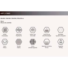 Dimensões(Cm): Comprimento(Profundidade): 198cm x Largura: 158cm x Altura: 35cm Tipo de Colchão - Molas Vantagens Extras de Colchão - Ecologicamente Correto - c/ Sistema Polyframe Tipo de Pillow - Pillow Top Europeu Tecido com Tratamento - AntiÁcaro e AntiFungo Tipo de Bordado do Tecido de Revestimento - Localizado Tipo Tecido de Forração Revestimento - Malha de Alta Qualidade - Malha 3D - Malha Belga Tipo de Forração do Revestimento Inferior - Antiderrapante Tipo de Tecido de Revestimento da Faixa Lateral - Linho Cor do Tecido de Revestimento da Faixa Lateral - Clara Cor do Tecido do Tampo - Branco Modo de Utilização - One Side Camadas Interna do Estofamento de Espuma - Alta Qualidade Tipo de Espuma - Espuma de Poliuretano de Alta Qualidade Tipo de Mola - Ensacadas MasterPocket Nível de Firmeza do Colchão - Firme Peso Máximo Suportado - 150 kg Certificação de Qualidade - Qualidade Aprovada - INMETRO - ISO 9001 Nossa Avaliação - Qualidade Muito Boa Tempo de Garantia - 3 meses - 12 meses