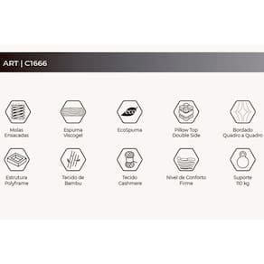 02 - CARACTERÍSTICAS E BENEFÍCIOS DE COLCHÕES E CAMAS BOX Tipo de Pillow - Pillow Top Tipo de Bordado - Bordado Localizado Tipo de Colchão - Molas Tipo de Mola - Ensacadas MasterPocket Nível de Firmeza do Colchão - Firme Modo de Utilização - One Side Diferenciais de Colchões e Cama Box - Sim