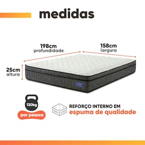 OBSERVAÇÃO: O colchão conta com uma base em EPS, um material resistente, leve e de alta durabilidade, que garante maior firmeza e prolonga a vida útil do colchão
