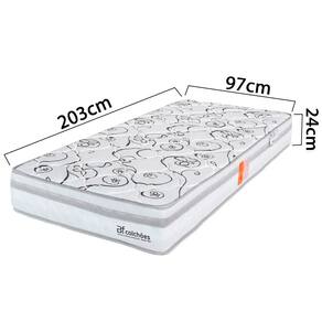 Características do colchão: Medidas: Solteirão (97cm x 203cm x 24cm - Largura x Comprimento x Altura);Nível de Conforto: Firme;Suporte de Peso: Até 120 Kg por pessoa;Camada de conforto: Espuma de Densidade 28 Certificada;High Support Board: Centro em poliestireno expandido (EPS);Tecido Superior: Jacquard bordado em matelassê;Tecido Lateral: Poliéster;Certificado de Qualidade: INMETRO;Garantia: 01 ano;Marca: BF Colchões.