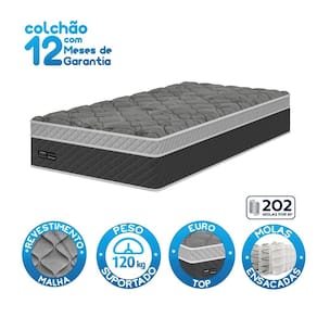 Características: Peso suportado 120kg Molas ensacadas Densidade D-26 Revestimento tampo malhas Revestimento lateral poliéster Possui EPS One face -não permite virar o colchão- Possui pilow: Euro top Selo inmetro: 007069/2024 OCP: 0166