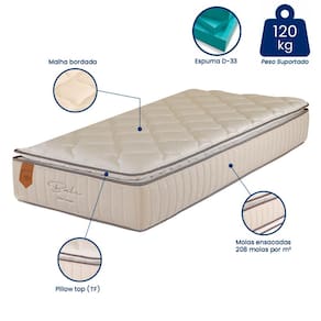 Você merece um sono de qualidade todas as noites e o Colchão de Solteiro Bali Prorelax é a escolha perfeita para alcançar isso. Com sua estrutura produzida em molas ensacadas e espuma D-33 certificada pelo INMETRO, este colchão oferece o equilíbrio ideal entre suporte e conforto. Com a tecnologia Pillow Top Turn Free, você não precisa se preocupar em virar o colchão, pois ele mantém sua qualidade por muito mais tempo, sendo necessário somente girá-lo. Além disso, o Colchão Bali Prorelax possui tratamento antimofo, antifungos, antiácaros e antialérgico, capacidade de suportar até 120 Kg por pessoa, e revestimento em malha bordado, que juntos garantem proteção, durabilidade e robustez, garantindo que você possa descansar tranquilamente.