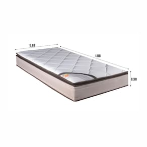 O aspecto ou proporção do colchão vai variar de acordo com o tamanho escolhido (Solteiro, Casal, Queen, King). A foto serve apenas de referência para visualização de acabamento e detalhes estéticos do produto.