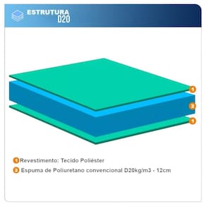 Fabricado com espuma D20, ele oferece um suporte adequado e é projetado para suportar até 50 kg, garantindo durabilidade e resistência.