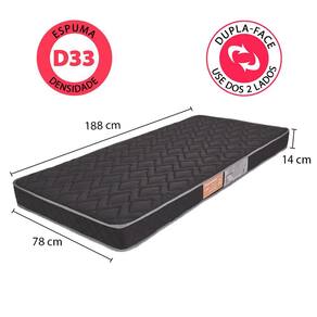 Desde 1968 produzindo colchões com qualidade para você!Contém:01 Colchão de Espuma D33Tamanho: SolteiroLargura: 78 cmAltura: 14 cmProfundidade: 188 cmCaracterísticas:Nível de Conforto: Suporte médio com toque macioTratamento do Tecido: Agente antimicrobiano (Anti