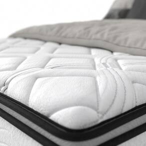 A primeira camada conta com conforto extra em Pillow Super e matelassê preenchido com fibra siliconada e espuma D20 Cilíndrica. Seu revestimento em malha branca com detalhes na cor preta (BO) possui gramatura 280 gramas e finalização com bordado localizado em formato de losango. O tecido em malha apresenta excelência em sua elasticidade e flexibilidade, o que o torna um material confortável e harmonioso no contato com a pele.