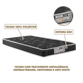 O Colchão Solteiro D20 é a opção ideal para quem busca conforto, praticidade e qualidade no dia a dia. Produzido com espuma de poliuretano D20, ele oferece o equilíbrio perfeito entre maciez e sustentação, garantindo uma noite de sono tranquila e reparadora.Seu revestimento em tecido 100% poliéster proporciona toque suave, boa ventilação e fácil manutenção, tornando-o uma excelente escolha para quartos infantis, de hóspedes ou solteiro.