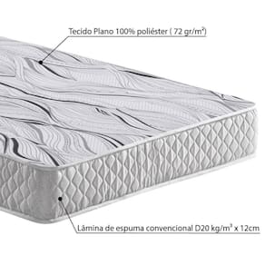 Ideal para você que deseja conforto e melhores noites de sono, o Colchão Solteiro Espuma D20 é a escolha perfeita. Um colchão para durar anos, feito com materiais de alta qualidade e resistência. Perfeito para você! Colchão de Espuma, Tampo Tecido plano com tratamento Anti-ácaro, Anti-fungo, e Anti-alérgico. Abertura para Ventilação: Não Ambiente Principal: Quarto Antiácaro: Sim Antialérgico: Sim Antifungo: Sim Cor: Cinza Cor do Produto: Cinza Itens Inclusos: 1 colchão solteiro Manual de Montagem e Instalação: https://cdn2.madeiramadeira.com.br/prd/ecoflex/1263002-EF-L37ECE00204_d.jpg Necessita Montagem: Não Origem do Produto: Nacional Peso: 3.8 Pillow: Não possui Precisa virar: Não Recomendações de Uso, Manutenção e Limpeza: Na limpeza não utilizar produtos químicos e abrasivos, usar apenas um pano umedecido, para garantir a maior durabilidade do móvel. Revestimento: Poliéster Tamanho: Solteiro Tipo de espuma: Espuma Poliuretano Tipo do Colchão: Espuma