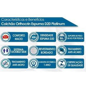 Densidade da Espuma do Colchão - 20 Nível de Firmeza do Colchão - Macio Peso Máximo Suportado do Colchão - 50 kg